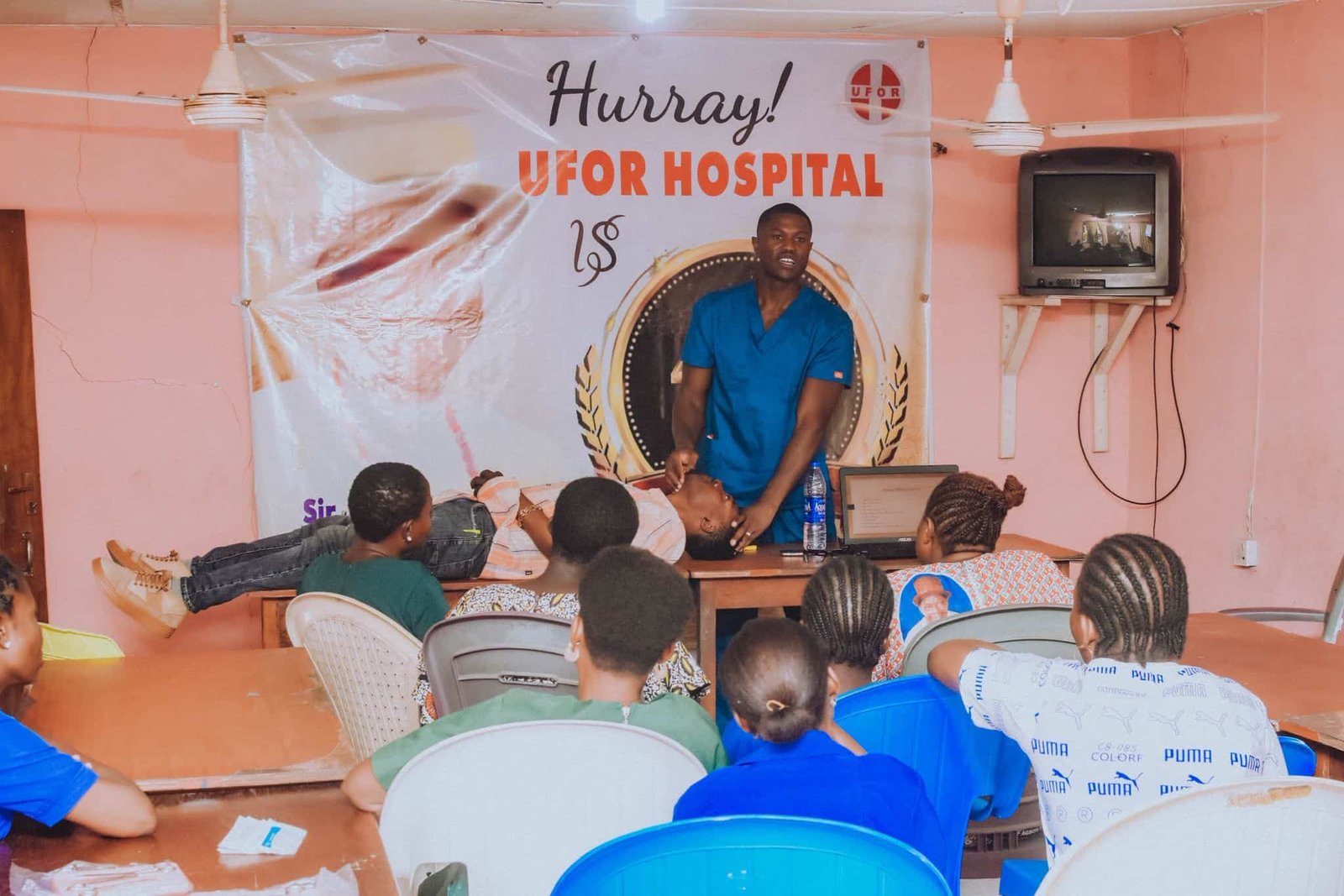 Mr. Ogho Obakponovwe leads an engaging session on Airway management with a practical demonstration for staff members, who had the opportunity to improve their airway skills in a safe setting. Through this community-based initiative, the Peter Claver Foundation empowers everyday people with the confidence and skills to act in emergency situations—bridging the gap between accident and access to care.